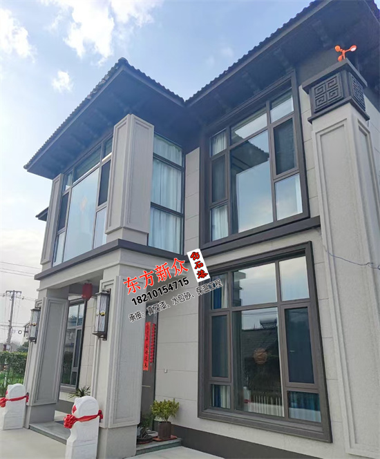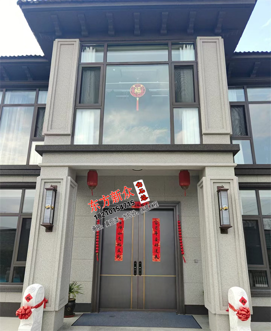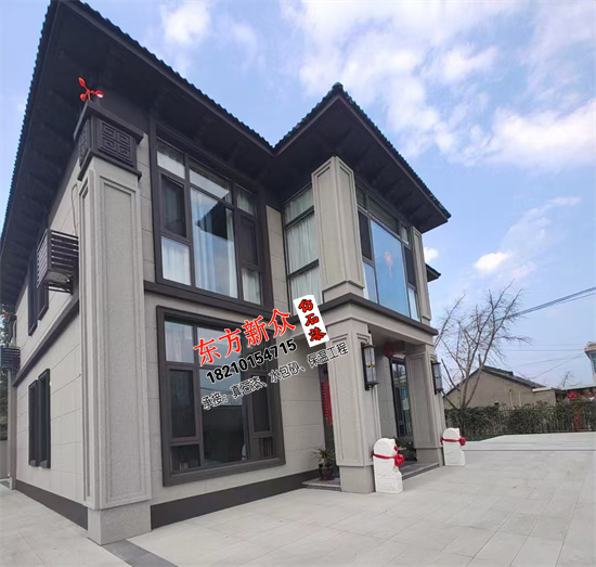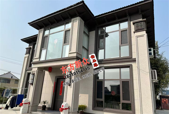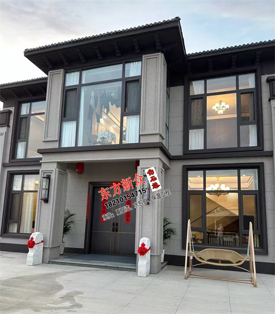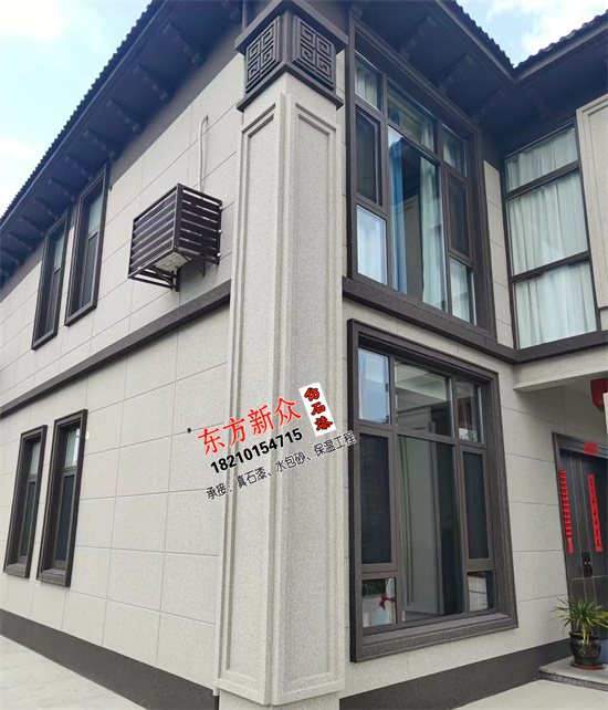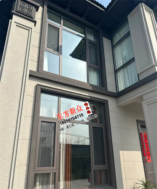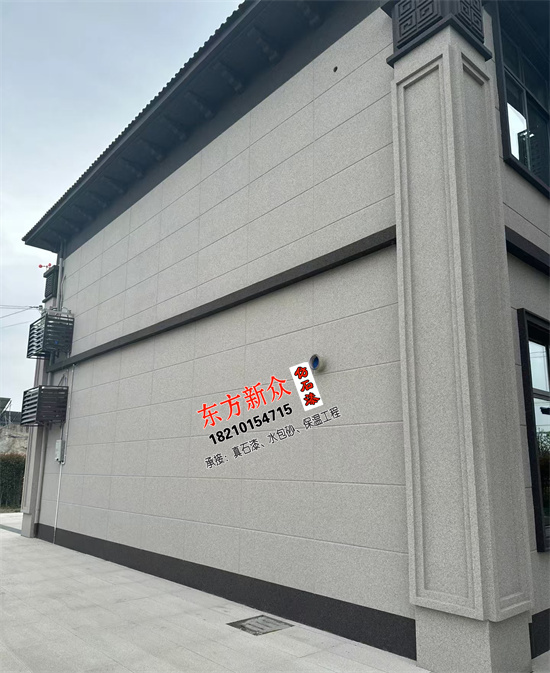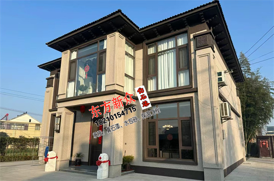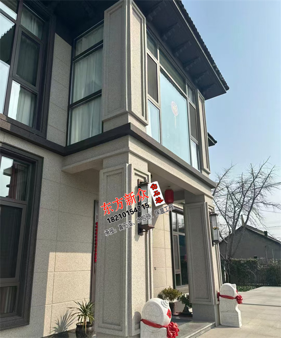 自建房別墅外墻采用(三棵樹)仿石漆雙凹槽工藝施工裝飾